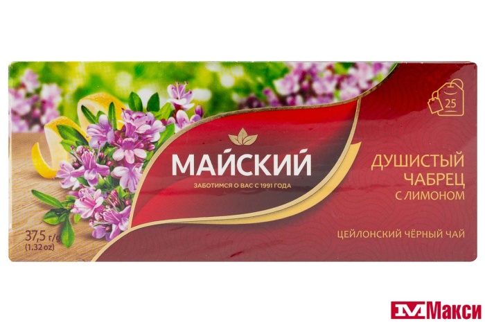Чай Майский "Душистый чабрец с лимоном" черный 25пак*1,5гр 1/18 102106