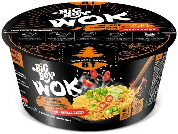 Лапша б.п. "Big Bon" Wok Ми Горенг по-индонезийски в соусе Спайси Чили 85гр чашка 1/24